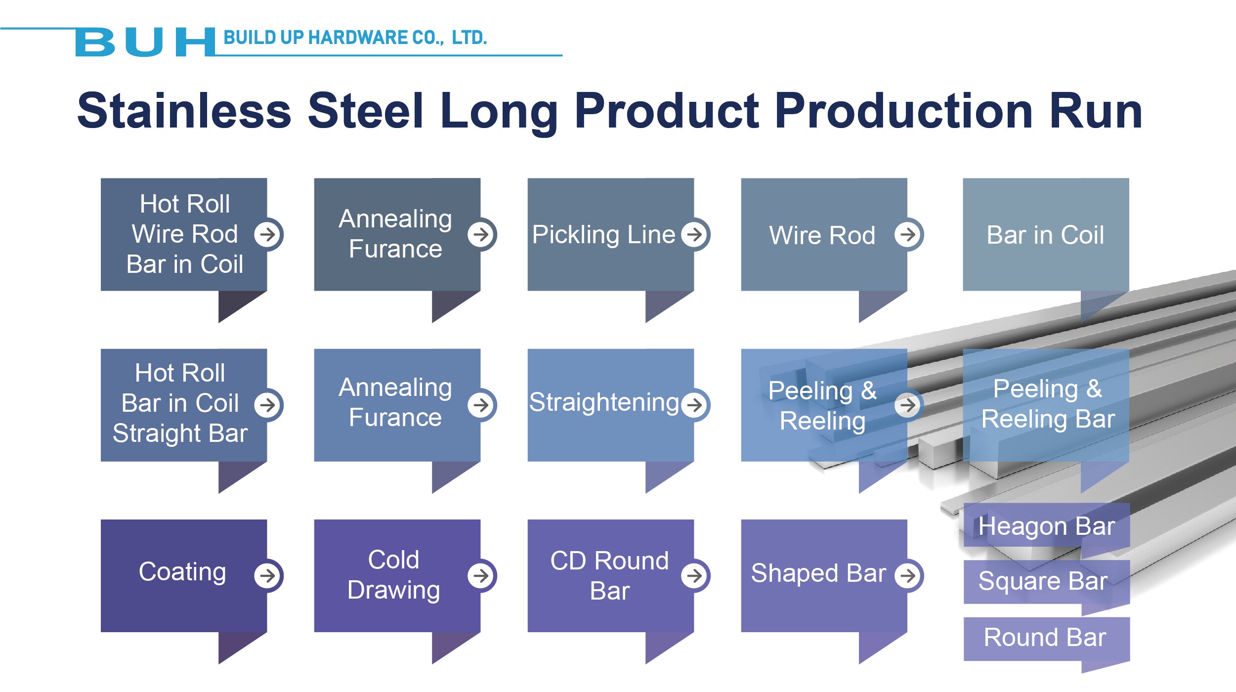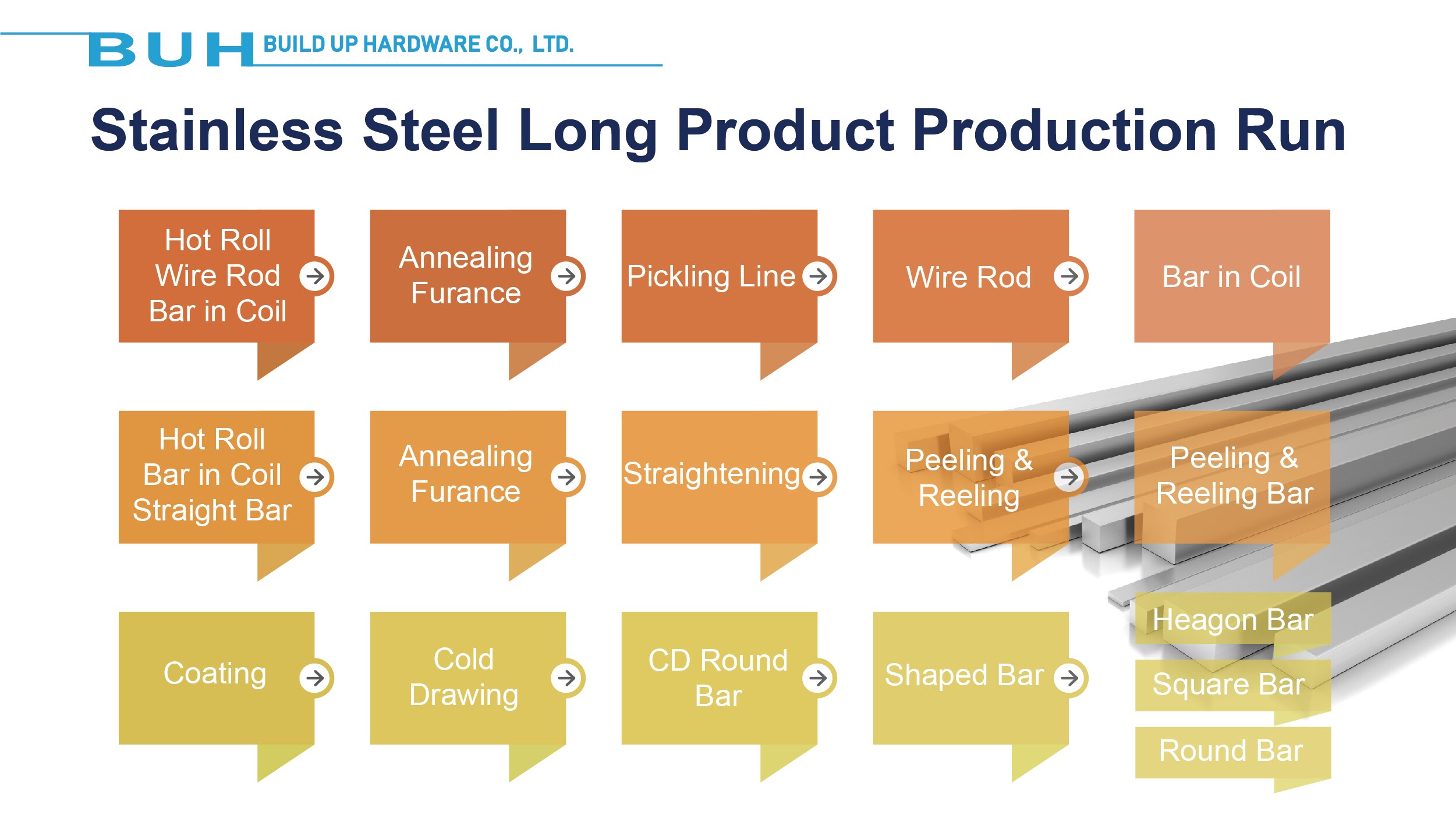 BUILD UP HARDWARE CO., LTD beschäftigt sich hauptsächlich mit der Herstellung und dem Handel von Rohren und Materialien aus rostfreiem Stahl aller Art sowie mit allen Arten des Gießens von OEM- und ODM-Teilen, einschließlich mechanischer Teile, Ventile, Servomotor-Körper, mit großer Flexibilität für kundenspezifische Mengen gemacht.